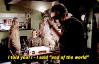 Giles: “It’s the end of the world.” Buffy, Willow, and Xander: “Again?”