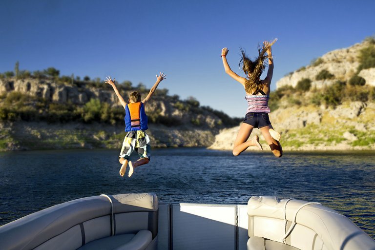 At first I was excited to see another boat on the water. It was ridiculous to think I would be the only one out here today. That excitement quickly turned into confusion when I noticed the two kids jumping off the stern. I know what you’re probably thinking. He was concerned that these kids are jumping into the lake and it’s just going to be too cold for them.