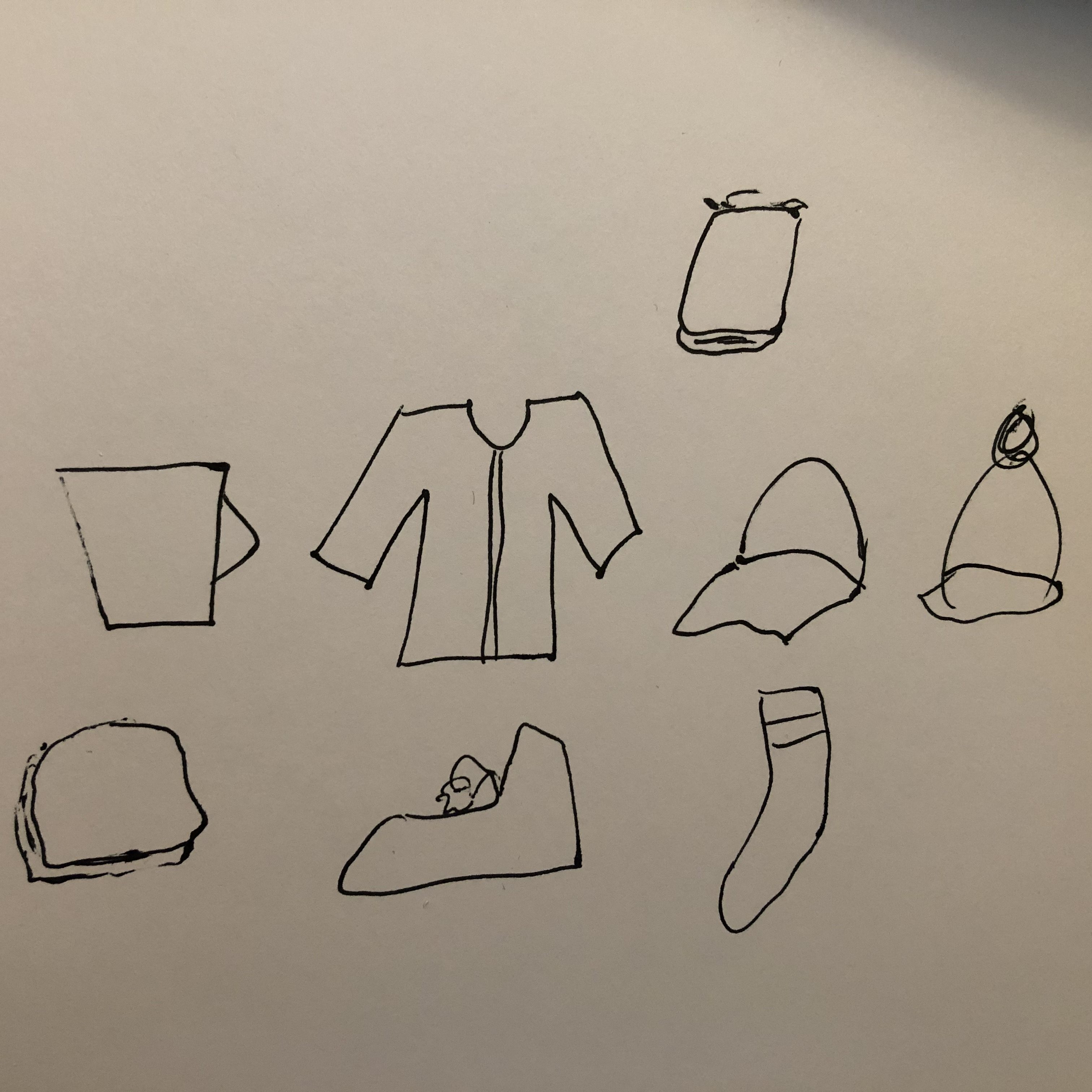 1. Think about items you might find in a Lost & Found. Now, draw as many of those items as you can in 60 seconds. Share your picture.