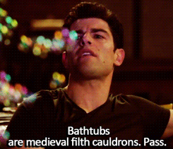 According to the National Day Calendar website, Bathtub Party Day is just a day when people are encouraged to forego their usual shower and take time soaking in the tub. No thanks. I think Schmidt perfectly sums up my thoughts on baths…