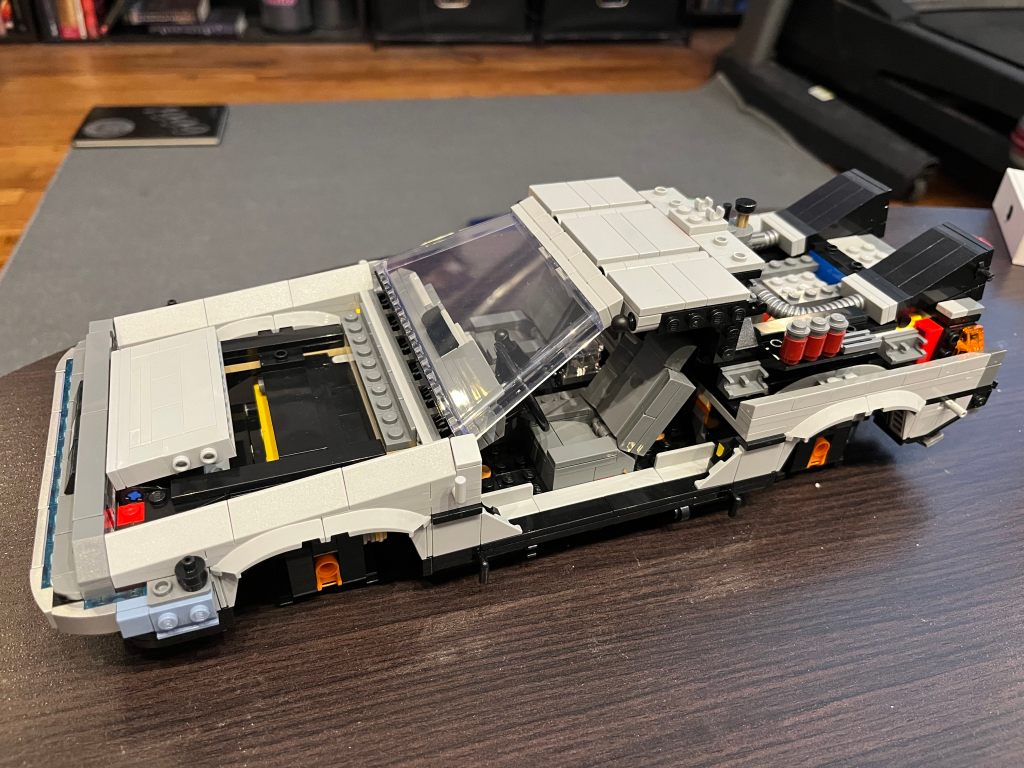 I have to admit… It was a lot of fun putting this thing together. The box arrived and contained 11 separate bags full of tiny LEGO pieces. I started building and, well, it didn’t look like much at the start. But I knew it would eventually turn into the iconic time machine from my favorite movie.