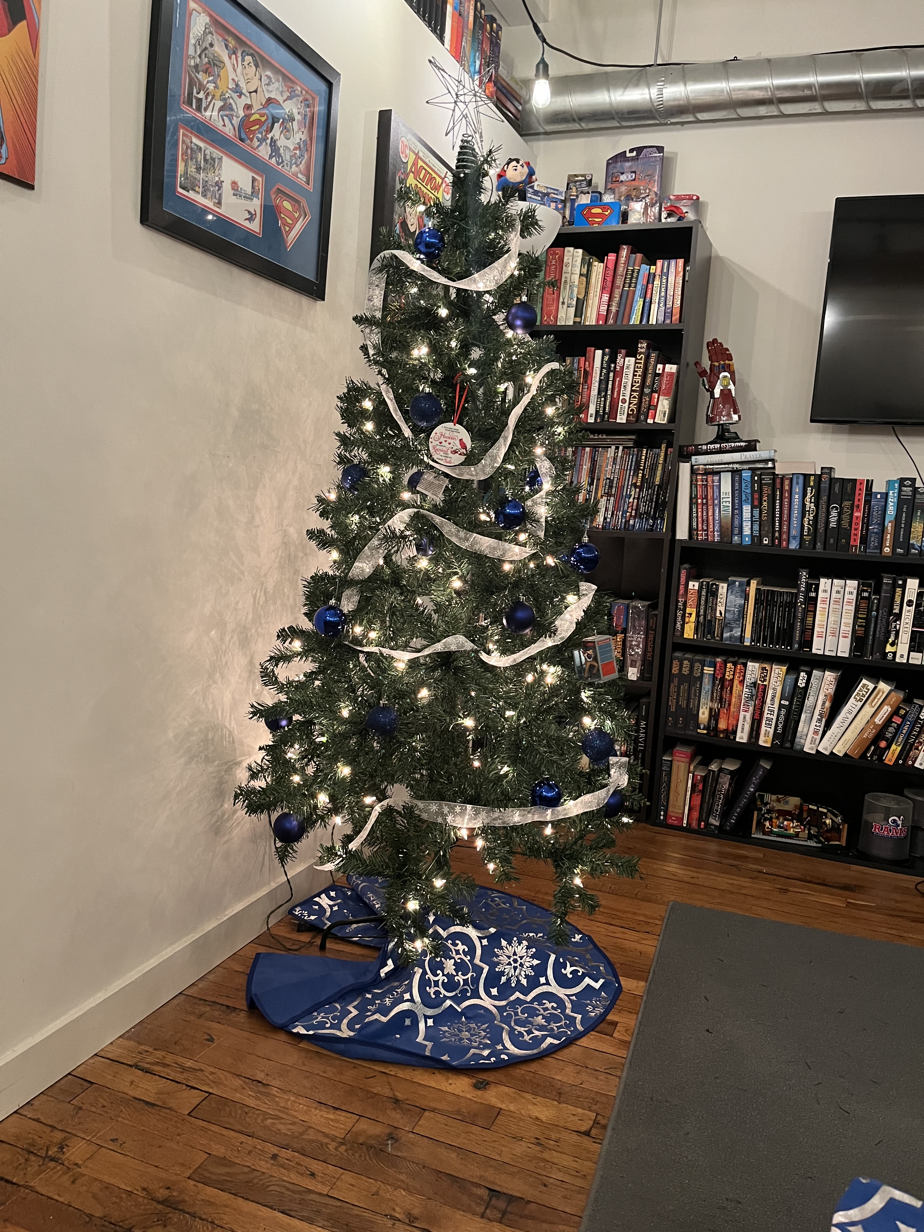 Confession: My tree wasn’t complete when I showed it off last week. It is complete now. I got a tree skirt and a ribbon to wrap around it. Also, if you’re an eagle-eyed reader and can spot one of two new ornaments I placed on the tree, you get bonus points. Not sure what those points will add up to. Let’s call it personal pride and satisfaction.